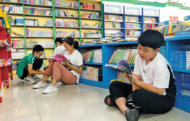 隨后,記者來到新華書店,許多市民正在書店看書納涼?!拔曳攀罴倭耍滋彀謰屔习嗪?,我就來書店里挑選自己喜愛的書籍,邊‘充電’邊消暑?!币幻麑W(xué)生說。