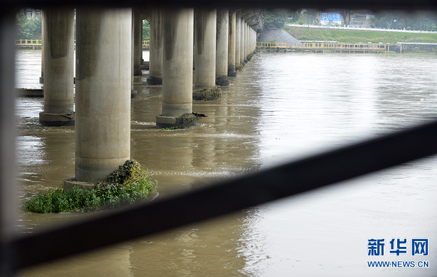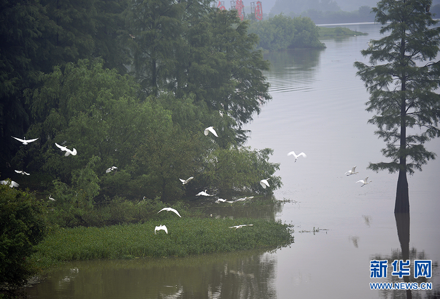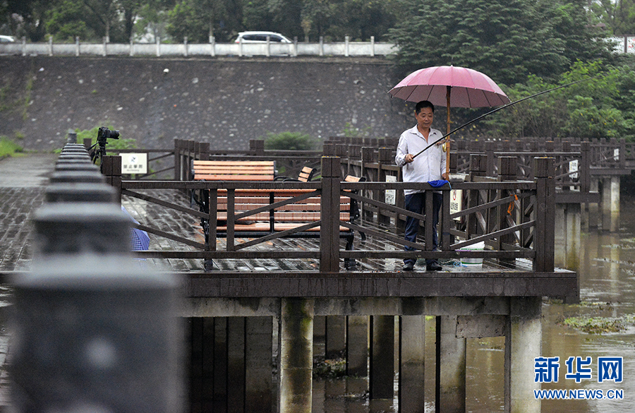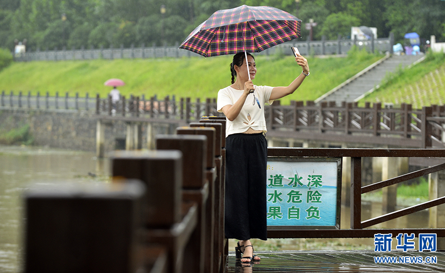 7月17日,河南省光山縣官渡河畔,一名游人在自拍。