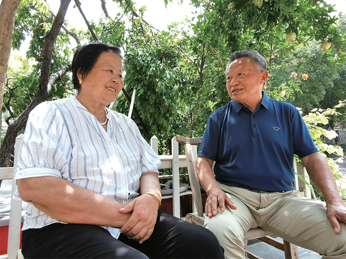 柴玉泉夫婦在石榴樹下笑談今天的美好生活