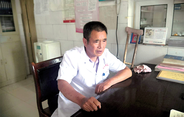 對(duì)于出不了遠(yuǎn)門(mén)這個(gè)“怪毛病”,許奎民解釋為腿腳不好,出行不便。村里跟他熟識(shí)的人都知道,幼時(shí)一場(chǎng)大病,讓許奎民患上了小兒麻痹。此后多年,他右腿肌肉嚴(yán)重萎縮,行動(dòng)離不了拐杖。所幸他從小聰慧,又能吃苦,順利完成了中專(zhuān)學(xué)業(yè),并在村干部的推薦下到市衛(wèi)校就讀。1979年從衛(wèi)校畢業(yè)后,他回到稱(chēng)彎村擔(dān)任鄉(xiāng)村醫(yī)生,一干就是41個(gè)春秋。