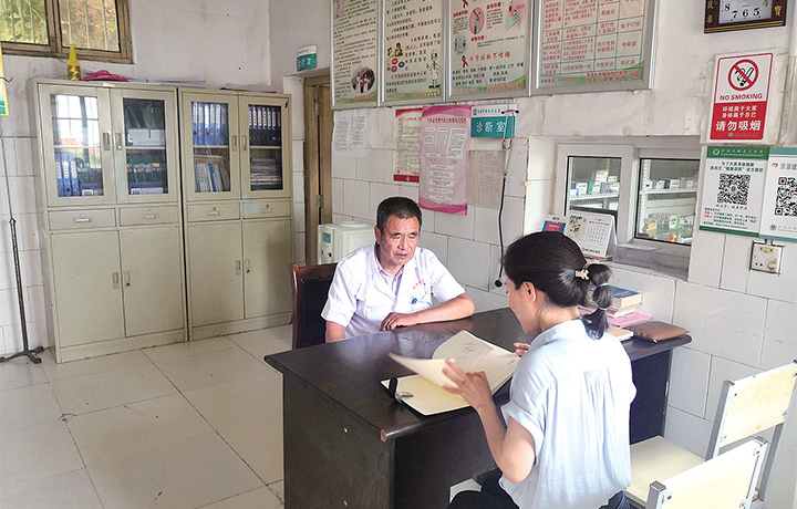 稱(chēng)彎村衛(wèi)生室位于村南面的高地上,承擔(dān)著全村488口人的基本醫(yī)療和公共衛(wèi)生服務(wù)任務(wù)。許奎民是這里唯一的村醫(yī)。