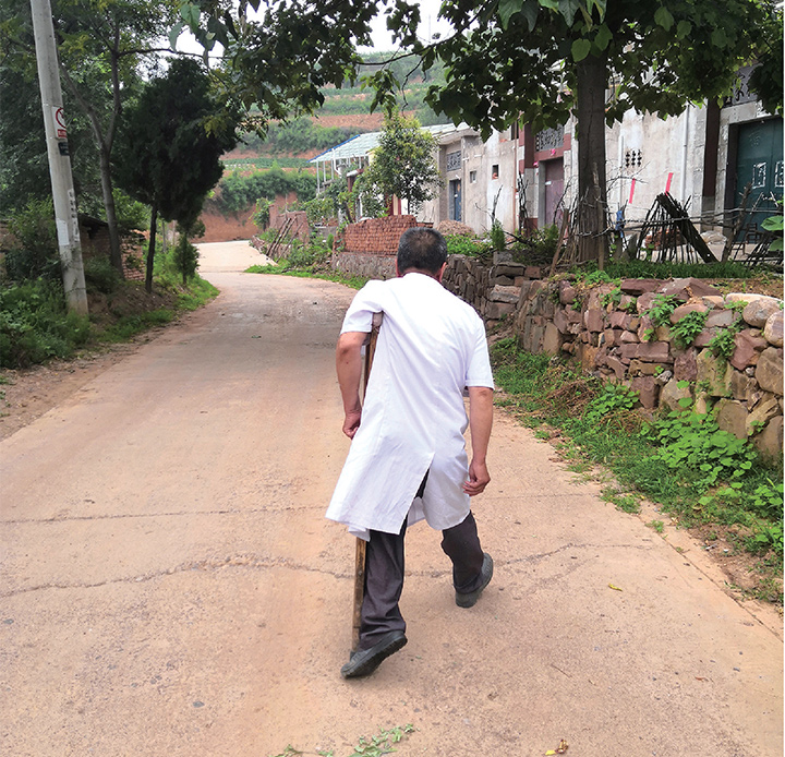 因行動(dòng)不便,衛(wèi)校畢業(yè)后,擺在他面前的只有一條路——回村里當(dāng)村醫(yī)。數(shù)十年來(lái),他風(fēng)里來(lái)雨里去,拄著拐杖走山路,一次又一次摔倒摔傷,回回傷在病殘的右腿?,F(xiàn)在,他的身體狀況變得更差:因?yàn)楣琴|(zhì)疏松嚴(yán)重,右腿摔傷部位無(wú)法做支架,只能慢慢愈合,整個(gè)右胯骨以下僅靠一層皮肉吊著,已經(jīng)不能稱(chēng)之為“腿”。