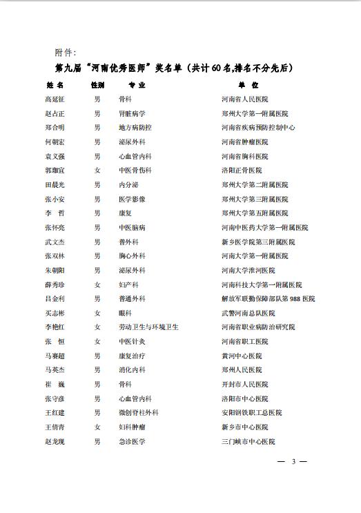 第九屆“河南優(yōu)秀醫(yī)師” 60人獲獎(jiǎng)