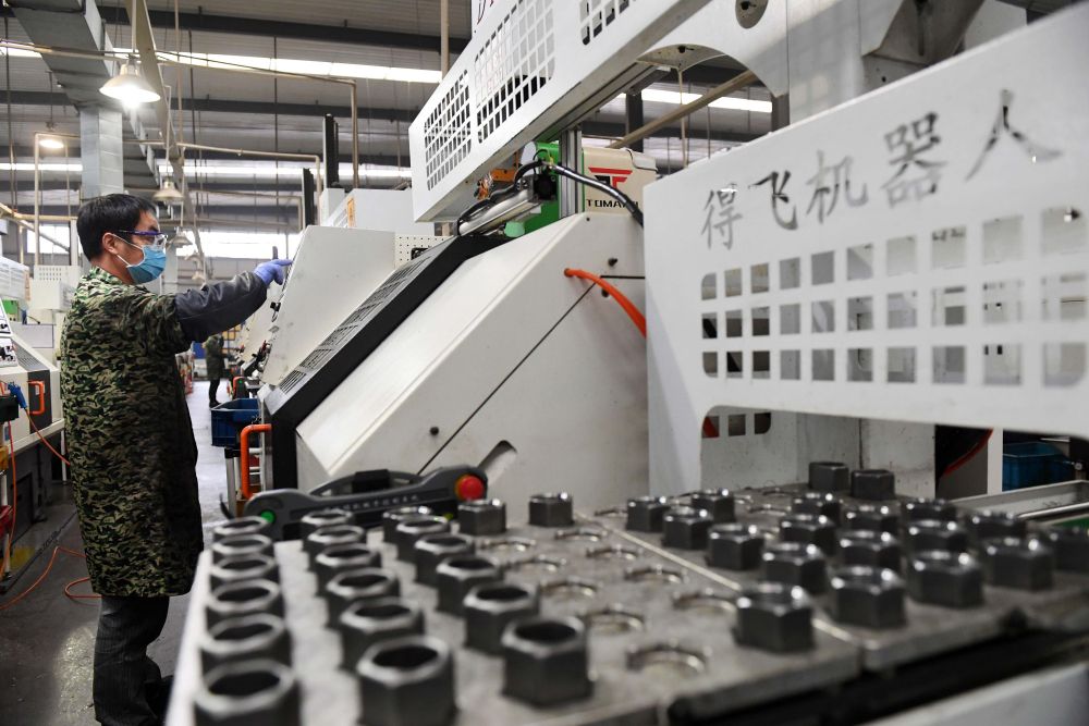 3月5日,在江西省宜春市一家企業(yè)車(chē)間內(nèi),工人在半自動(dòng)化生產(chǎn)線上工作。各地工業(yè)企業(yè)在做好疫情防控的同時(shí)積極復(fù)工復(fù)產(chǎn)。新華社發(fā)(周亮 攝)