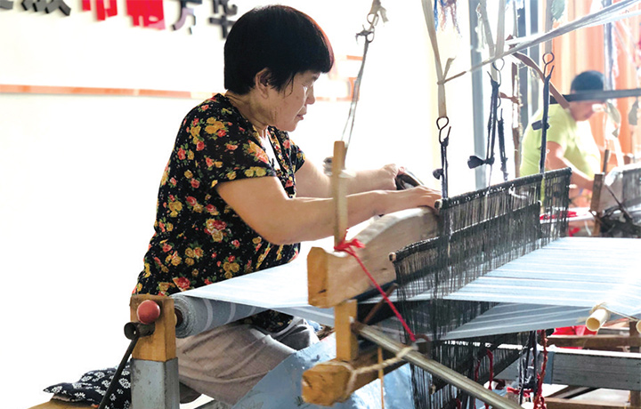 “這些老粗布都是采用古法技藝手工織成的,技術(shù)由老一輩人手口相傳?!敝裼游瘯?huì)黨支部書記崔西省向記者介紹,竹峪居委會(huì)有手工織布的傳統(tǒng),但之前生產(chǎn)不成規(guī)模,并未取得好的經(jīng)濟(jì)效益。2018年,由居委會(huì)婦聯(lián)牽頭,該居委會(huì)投資10萬元建設(shè)了竹峪鳳凰老粗布手工坊。如今,手工坊有固定織布機(jī)10臺(tái),以粗布紡織、銷售為主,帶動(dòng)居委會(huì)及周邊婦女80余人就業(yè)。2019年,其成為“濟(jì)源巧媳婦創(chuàng)業(yè)基地”。