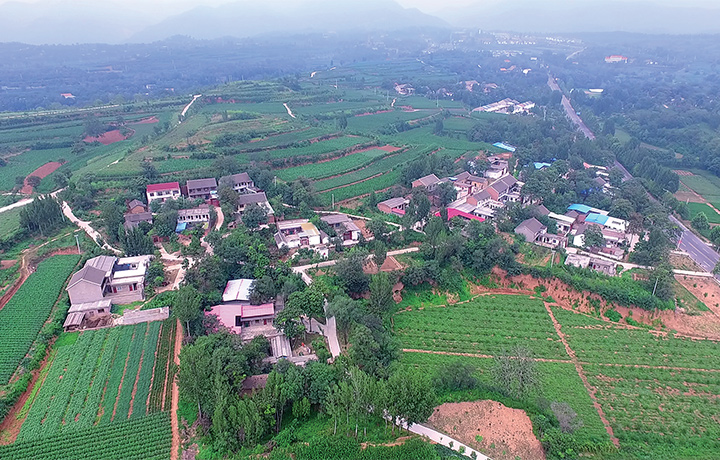 俯瞰王屋山,群嶺起伏,林海厚綠。原莊村,就在這綠染的層林中間。