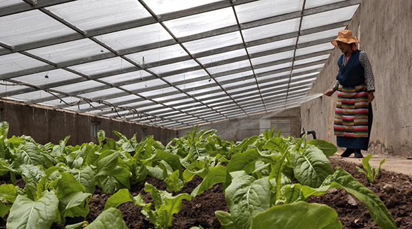 對這些溫室大棚上心的,當(dāng)然還有很多人。蔬菜種植員索朗布赤就是其中之一。今年51歲的她,已經(jīng)在這里工作了4年。她的日常工作是給蔬菜澆水,工作時間從上午9點到晚上6點半,中間會有一個小時的午休時間。工作不算很辛苦,收入也比較可觀,每月的工資有3500元。她是在這里工作的幾十名建檔立卡貧困戶之一。實現(xiàn)了就業(yè),脫貧增收的好日子也就來了。