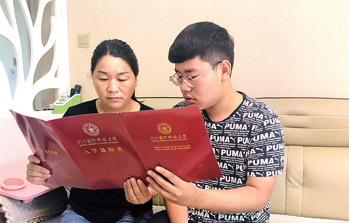 “您好,請(qǐng)問(wèn)是王佳輝本人嗎?您的錄取通知書到了,請(qǐng)準(zhǔn)備好身份證、準(zhǔn)考證進(jìn)行簽收?!?月21日上午,中國(guó)郵政集團(tuán)有限公司濟(jì)源分公司投遞員程?hào)|風(fēng)來(lái)到半山春景小區(qū),在仔細(xì)核對(duì)考生的有效身份證件和準(zhǔn)考證后,將一封來(lái)自中國(guó)人民解放軍國(guó)防科技大學(xué)的錄取通知書鄭重地交給考生本人,并送上祝福。