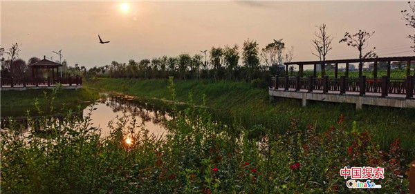 在張莊村文化廣場,采訪團(tuán)看到,這個2019年建設(shè)完成的廣場,周圍種植綠化樹種20余種,綠化面積近1萬平方米。該文化廣場沿河而建,兩條長長的走廊蜿蜒分布在小河兩岸,走廊盡頭是視野開闊的觀景平臺。