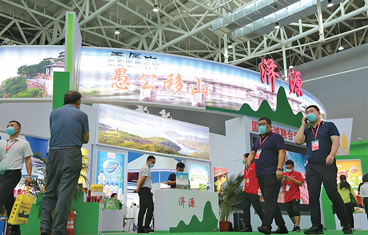 這是第23屆中國農(nóng)產(chǎn)品加工業(yè)投資貿(mào)易洽談會上的濟源展臺(9月6日攝)。記者 付衛(wèi)東 攝