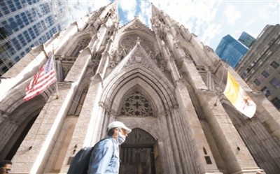 9月20日,行人經(jīng)過美國(guó)紐約圣帕特里克大教堂。新華社記者 王迎 攝