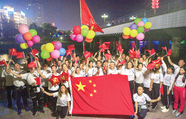 9月30日晚,在沁園橋下,市民自發(fā)組織健步走活動歡慶國慶。 記者 劉培琳 攝