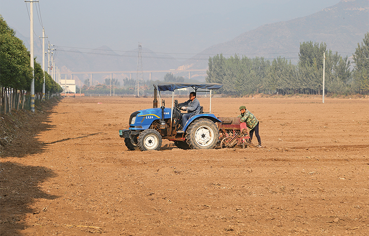 霜降前后,農(nóng)民緊抓晴好天氣種植小麥,為明年夏糧豐收奠定良好基礎(chǔ)。記者 李浩 攝