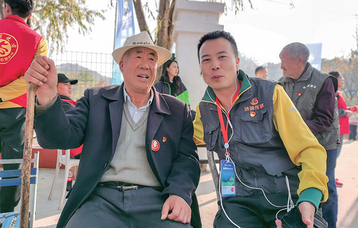 清晨,一抹朝陽喚醒了這里常住的四五十名村民。早上6點(diǎn)30分左右,92歲的老黨員李牛柱就往村口“跑”?!皣H徒步大會(huì)辦到我們村,我今天一定要站好崗、守好門,不能有任何差錯(cuò)?!彼f。雖然雙腿沒那么利索,但是他的步伐堅(jiān)定有力,志愿服背后的“當(dāng)代新愚公”5個(gè)大字更是引人注目。