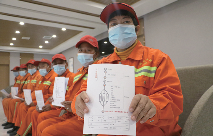 當天是河南省第二十三屆環(huán)衛(wèi)工人節(jié),濟源城市環(huán)衛(wèi)服務(wù)有限公司組織環(huán)衛(wèi)工人進行體檢。此次體檢包括基礎(chǔ)檢查、血常規(guī)、血糖測定、血脂、腹部彩超等項目。通過體檢,讓環(huán)衛(wèi)工人全面了解自己的健康狀況,提高“城市美容師”們的幸福感。記者 趙新迪 攝