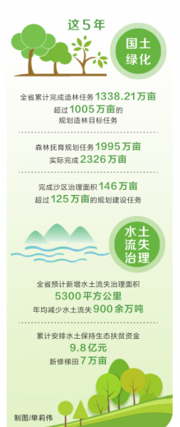 數(shù)據(jù)顯示,這5年,全省累計完成造林任務(wù)1338.21萬畝,超過規(guī)劃目標任務(wù)的三分之一;累計完成森林撫育2326萬畝,是規(guī)劃目標任務(wù)的116.3%,為“十三五”交上了一份出色的答卷。