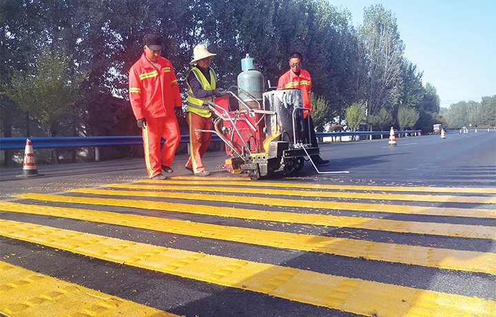圖為工人在施劃震蕩標(biāo)線