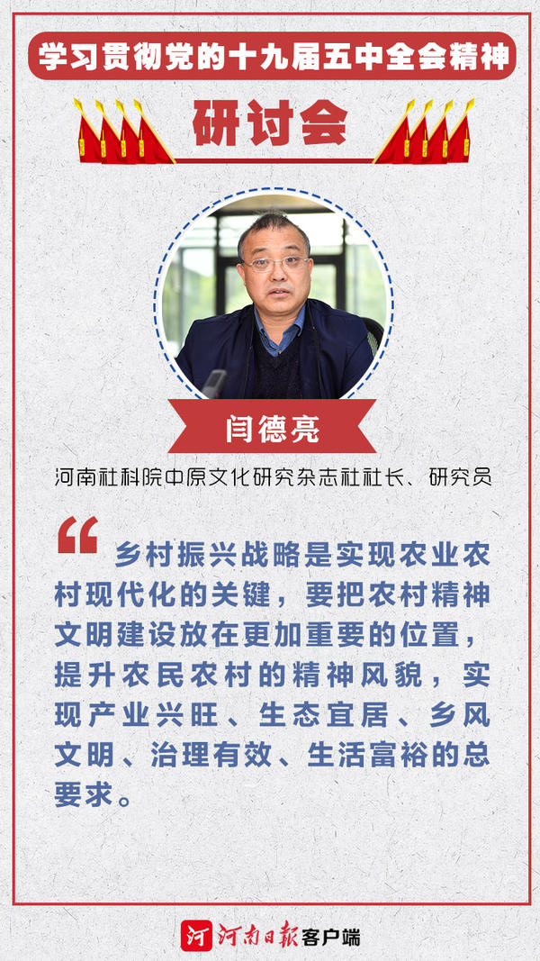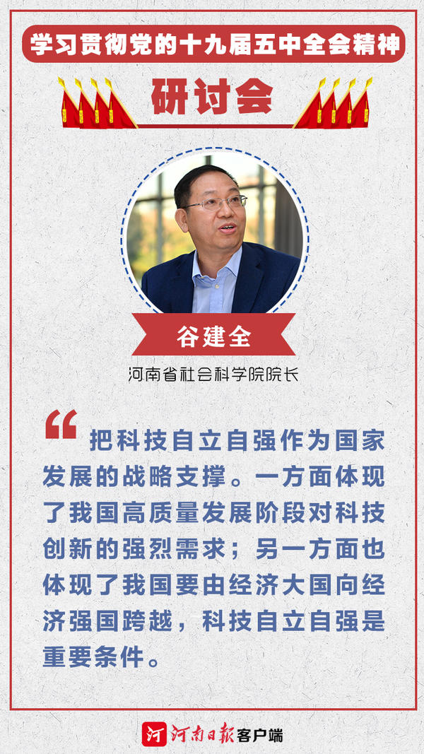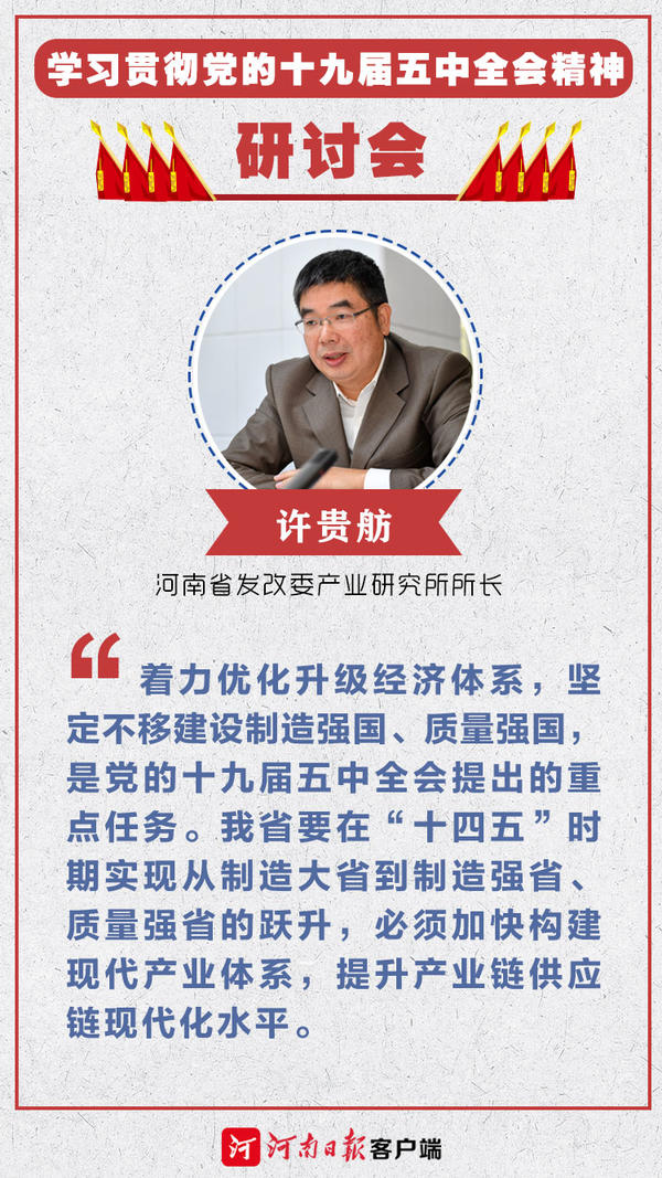 黨的十九屆五中全會(huì)對(duì)“十四五”時(shí)期經(jīng)濟(jì)社會(huì)發(fā)展和2035年遠(yuǎn)景目標(biāo)作出了系統(tǒng)謀劃和戰(zhàn)略部署。為了認(rèn)真學(xué)習(xí)、深刻領(lǐng)會(huì)全會(huì)的精神實(shí)質(zhì)、豐富內(nèi)涵和核心要義,11月4日,河南省社科院、河南日?qǐng)?bào)報(bào)業(yè)集團(tuán)聯(lián)合舉辦“學(xué)習(xí)貫徹黨的十九屆五中全會(huì)精神研討會(huì)”,邀請(qǐng)省內(nèi)多位專家學(xué)者,就全會(huì)提出的新表述、新論斷、新要求、新任務(wù)展開交流研討?! ?/p>