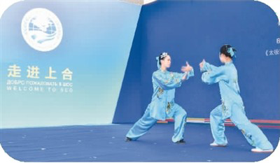 10月18日,上海合作組織秘書處在北京舉行2020-2021年上合組織文化體育系列活動(dòng)新聞發(fā)布會(huì)。圖為北京體育大學(xué)的學(xué)生在表演太極。新華社記者 陳益宸 攝