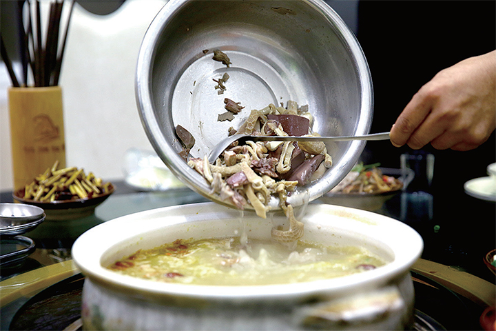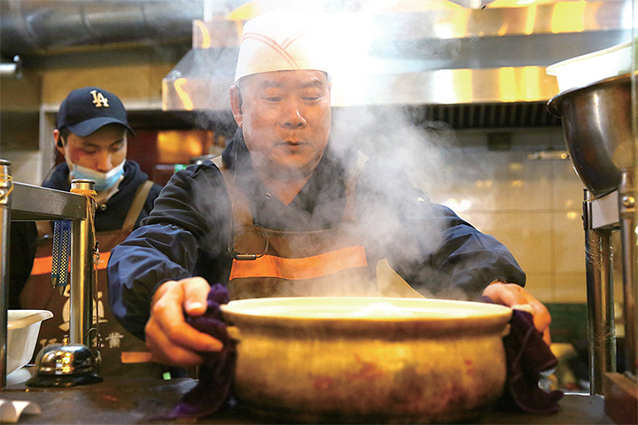 鮮嫩的羊肉在鍋里咕嘟咕嘟地翻滾。騰騰熱氣繚繞間,泛白的湯、煨熟的肉,讓人垂涎三尺,忍不住想下筷子撈起幾塊兒,吃個暢快淋漓。一口鮮羊肉,不僅品嘗出了羊肉的本味,也喚起了吃貨們的味蕾記憶。