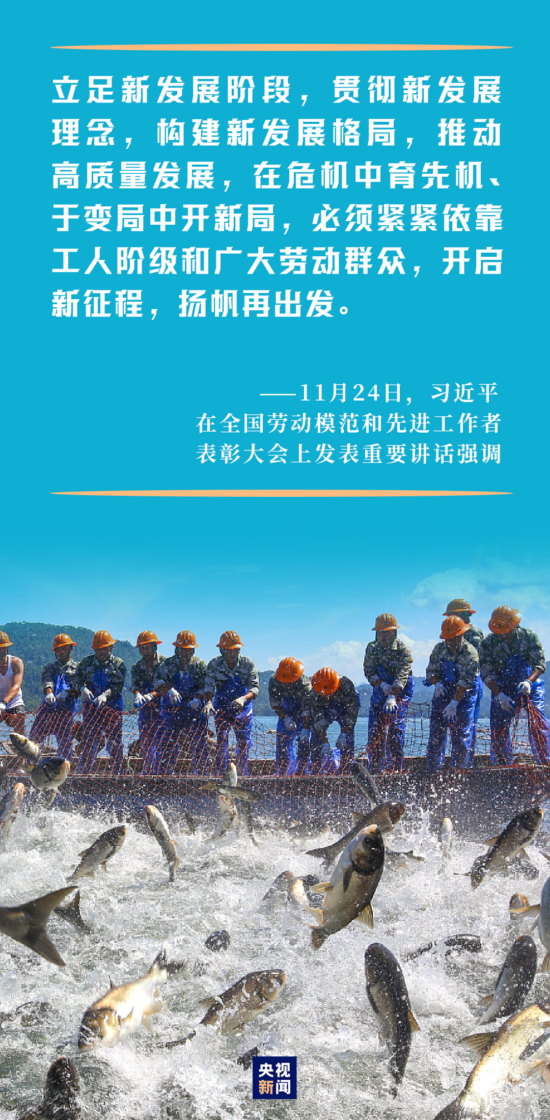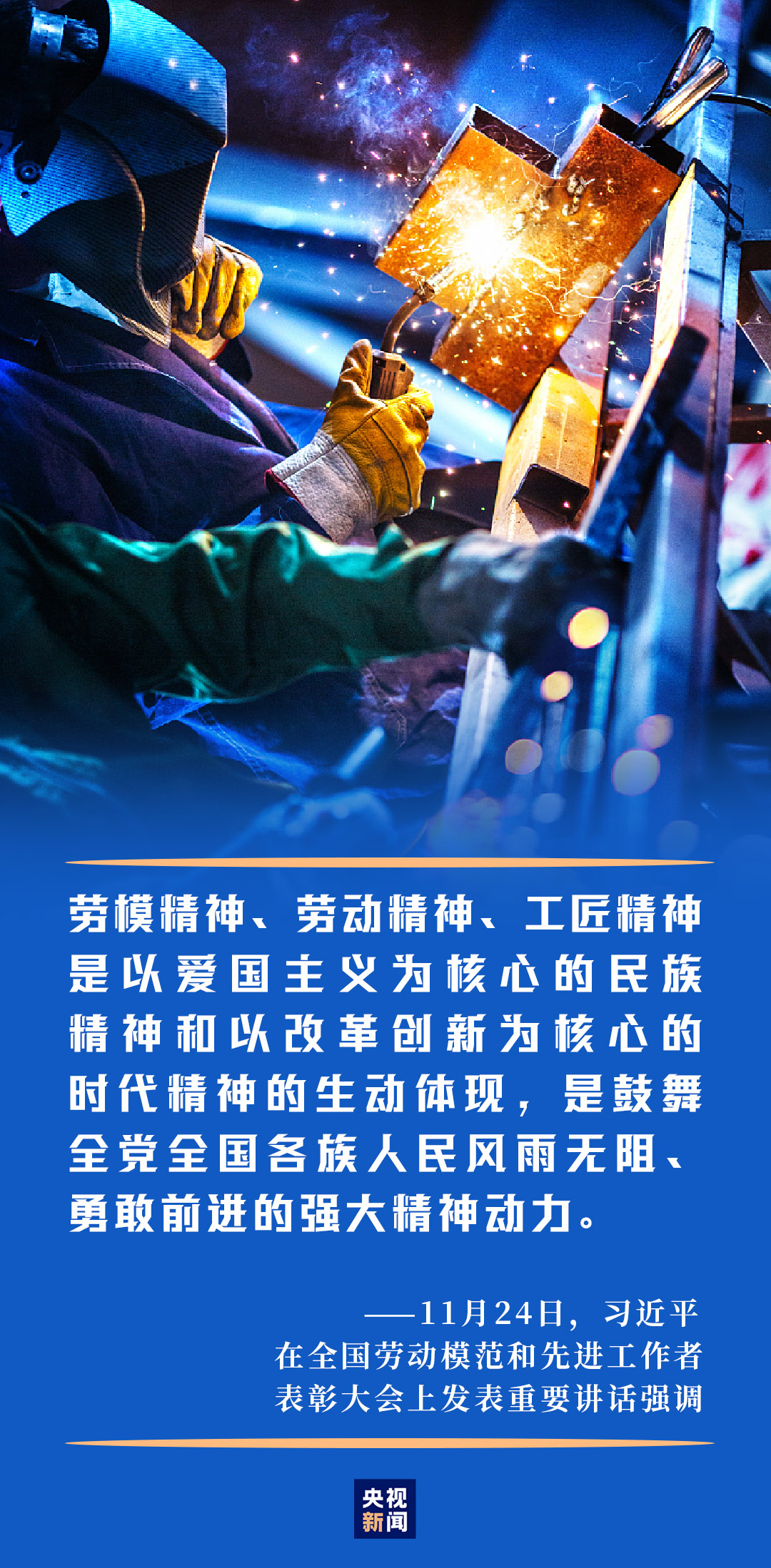 11月24日上午,習(xí)近平總書記在全國勞動模范和先進工作者表彰大會上發(fā)表重要講話,點贊勞動模范是民族的精英、人民的楷模,是共和國的功臣,贊揚工人階級和廣大勞動群眾用智慧和汗水譜寫了“中國夢·勞動美”的新篇章,鼓舞全黨全國各族人民大力弘揚勞模精神、勞動精神、工匠精神,在全面建設(shè)社會主義現(xiàn)代化國家新征程上創(chuàng)造新的時代輝煌?! ?/p>