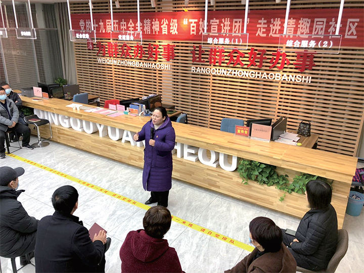 為確保轄區(qū)各級黨員干部深刻領(lǐng)會十九屆五中全會核心要義,把思想和行動統(tǒng)一到全會精神上來,11月27日,省委“百姓宣講團”走進濟源示范區(qū)北海街道進行宣講,街道黨員干部群眾聆聽了宣講報告。記者 武迪 攝
