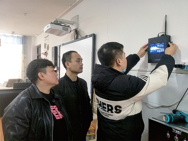 11月29日,工作人員在沁園中心幼兒園安裝調(diào)試由愛心企業(yè)捐贈的空氣質(zhì)量態(tài)勢感知儀。