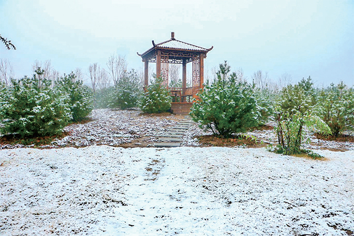 草地、涼亭被積雪覆蓋