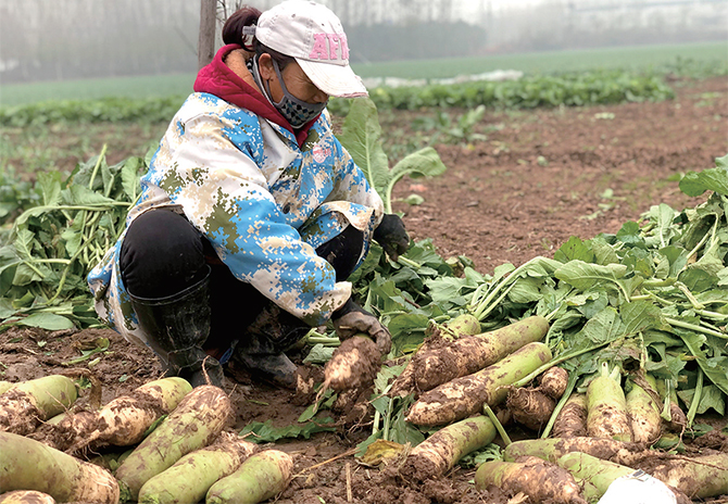 應(yīng)對(duì)氣溫驟降 農(nóng)民搶收蘿卜