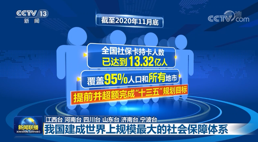 “十三五”期間,我國社保制度體系逐步完善,覆蓋范圍不斷擴大,保障水平穩(wěn)步提高,管理服務(wù)優(yōu)化規(guī)范,建成世界上規(guī)模最大的社會保障體系,切實增強了人民群眾的獲得感、幸福感和安全感。