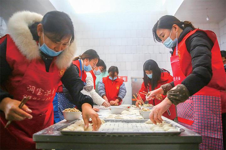 志愿者為孩子們包餃子