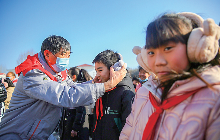 志愿者為孩子們送上耳暖