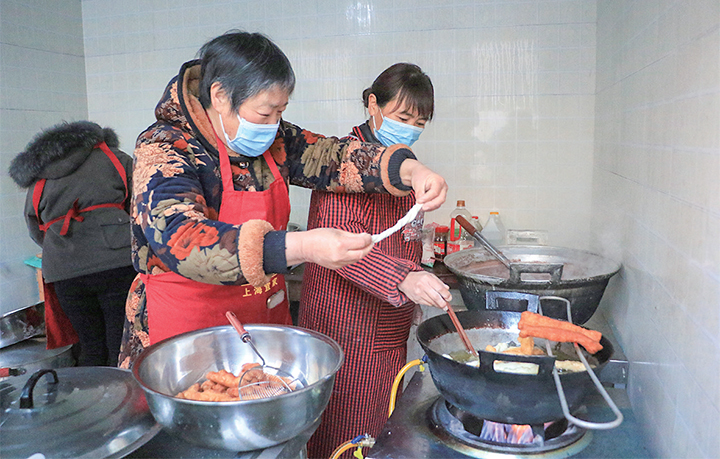 “您二老今天來挺早,天冷,進(jìn)屋暖和暖和。今早炸了油條,馬上就開飯?!彼麄儎傔M(jìn)門,便有人熱情招呼起來。