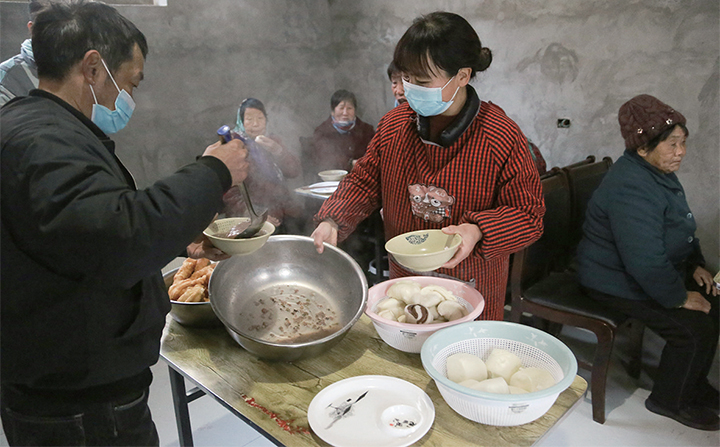 他說:“早餐對(duì)老年人太重要了,要讓老年人吃得營養(yǎng),吃得放心?!弊鲈绮偷闹驹刚吖潭ㄔ谌艘陨?,是由村干部帶頭參加。志愿者每天6點(diǎn)到幸福苑,先把餐廳的電暖氣打開,忙到8點(diǎn)準(zhǔn)時(shí)開飯,如果遇到惡劣天氣,會(huì)將飯菜一個(gè)一個(gè)送到老人家里,“這是大伙兒商量好的”。