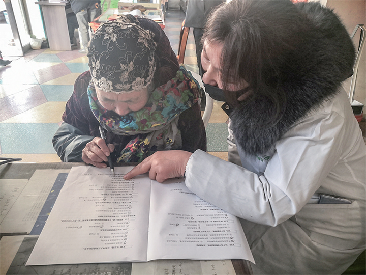 與此同時(shí),北海街道下街居委會(huì)衛(wèi)生所內(nèi),目不識(shí)丁的老人張紅霞也在調(diào)查員的協(xié)助下,認(rèn)真勾選問卷答案。