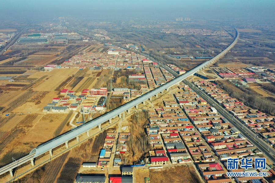 京雄城際鐵路河北霸州段的全封閉聲屏障(12月25日攝,無(wú)人機(jī)照片)。新華社記者 牟宇 攝