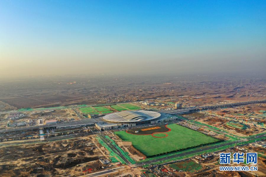 12月24日拍攝的京雄城際鐵路雄安站(無(wú)人機(jī)照片)。新華社記者 楊世堯 攝