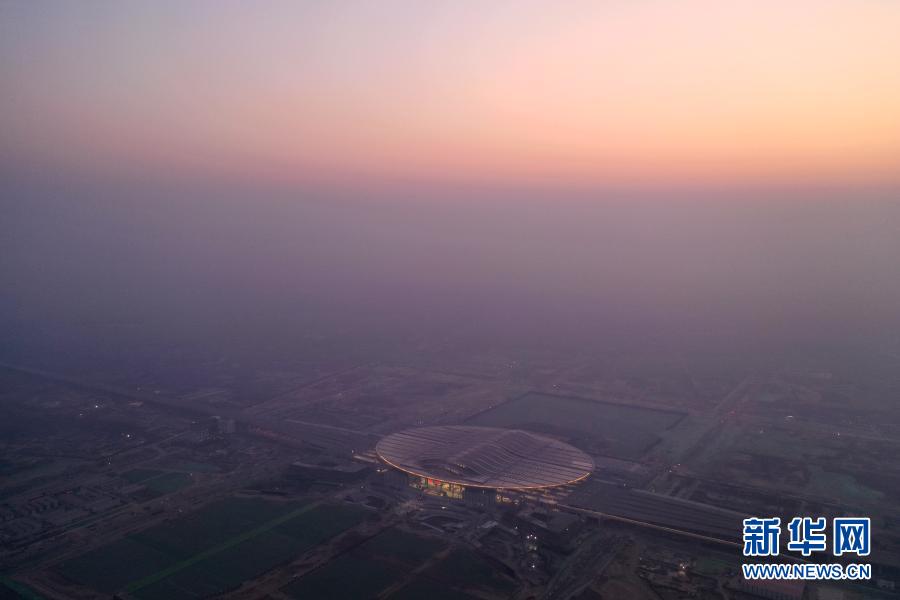 12月27日,開(kāi)通當(dāng)日晨光下的京雄城際鐵路雄安站(無(wú)人機(jī)照片)。新華社記者 牟宇 攝
