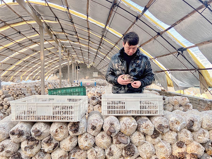 梨林鎮(zhèn)食用菌種植戶(hù)在采摘蘑菇。