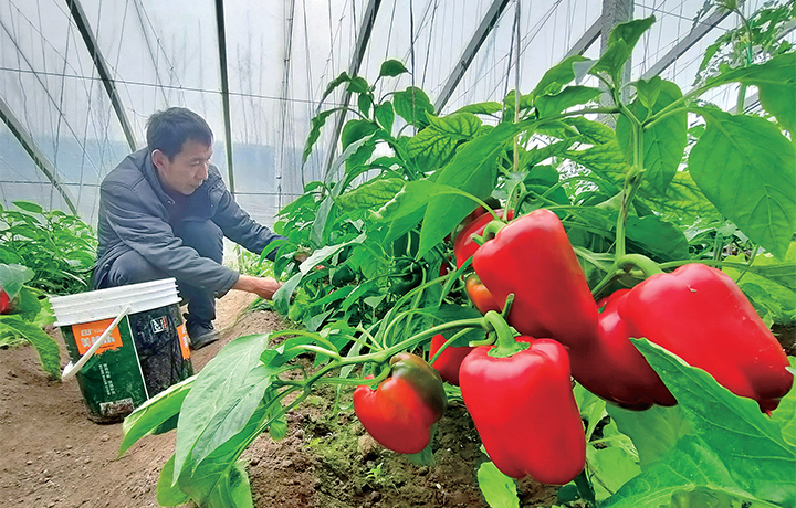 近日,陸家?guī)X居委會蔬菜大棚里的彩椒成熟,菜農(nóng)抓住冬季蔬菜上市的好時機(jī)投放市場,增加收入。記者 李浩 攝