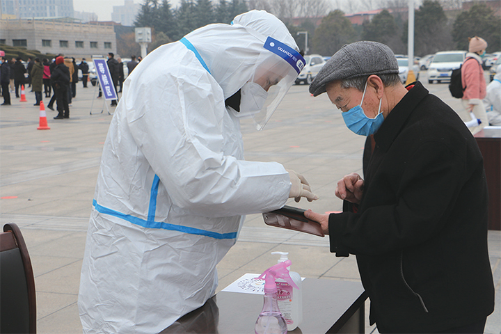 醫(yī)務(wù)人員為受檢測(cè)居民提供幫助