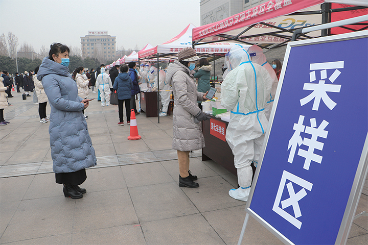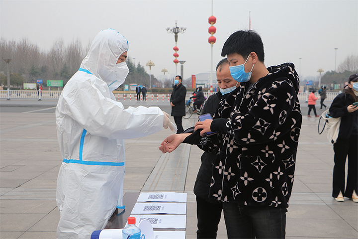在文化城西廣場(chǎng),記者看到,演練現(xiàn)場(chǎng)設(shè)置了入口處、登記區(qū)、等候區(qū)、采樣區(qū)、保障區(qū)、臨時(shí)隔離區(qū)等6個(gè)區(qū)域。參加演練的受檢人員經(jīng)過體溫測(cè)量后,井然有序地進(jìn)入等候區(qū),每人間隔一米距離,排隊(duì)等候采樣。