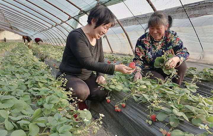 近日,在軹城鎮(zhèn)一家草莓觀光采摘園內(nèi),工人們正忙著清除雜草。
