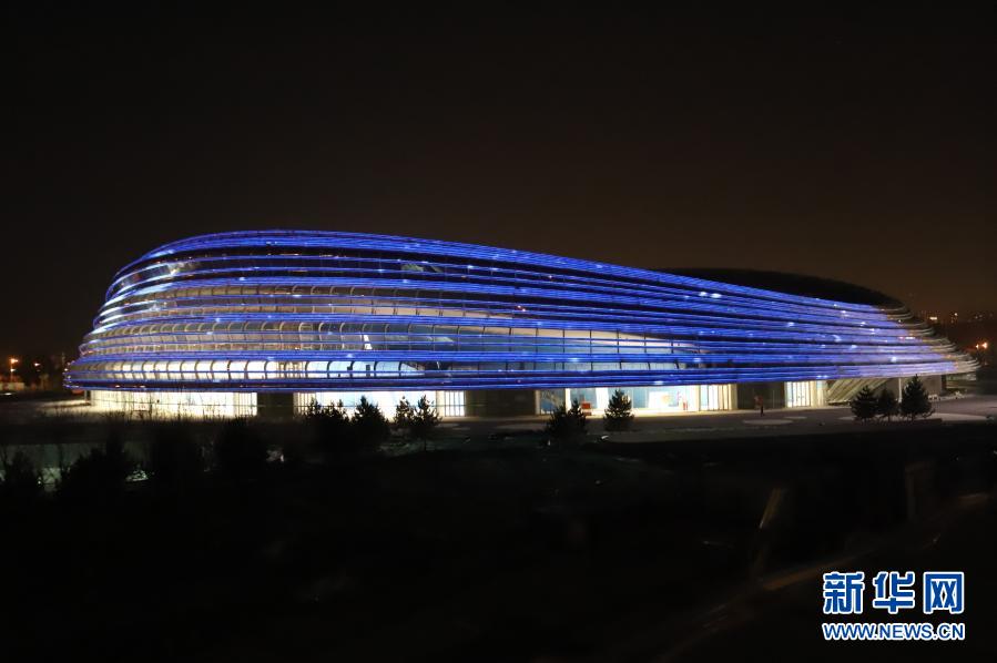 這是2020年12月15日,國(guó)家速滑館進(jìn)行場(chǎng)館外立面泛光照明調(diào)試。新華社記者 張驍 攝