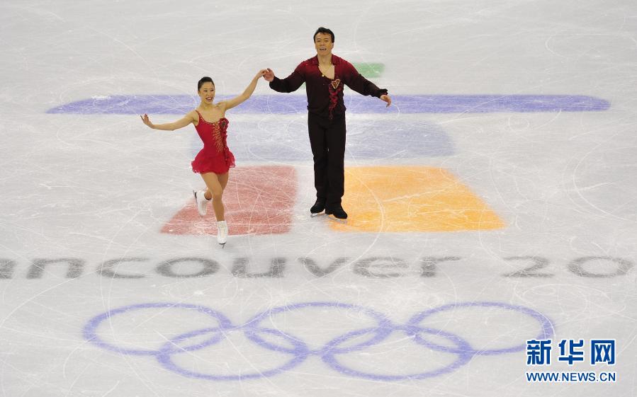 這是2010年2月15日,中國(guó)選手申雪(左)/趙宏博在溫哥華冬奧會(huì)花樣滑冰雙人滑比賽奪冠后向觀眾致意。新華社記者 武巍 攝