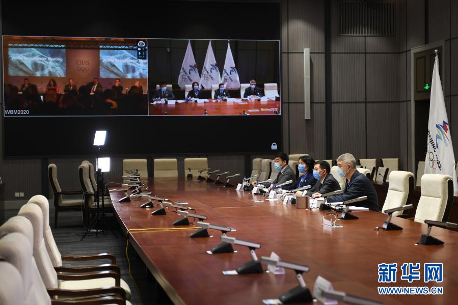 這是2020年2月24日,北京冬奧會(huì)和冬殘奧會(huì)2020年世界轉(zhuǎn)播商大會(huì)北京分會(huì)場(chǎng)通過(guò)視頻連線方式參會(huì)。新華社記者 鞠煥宗 攝