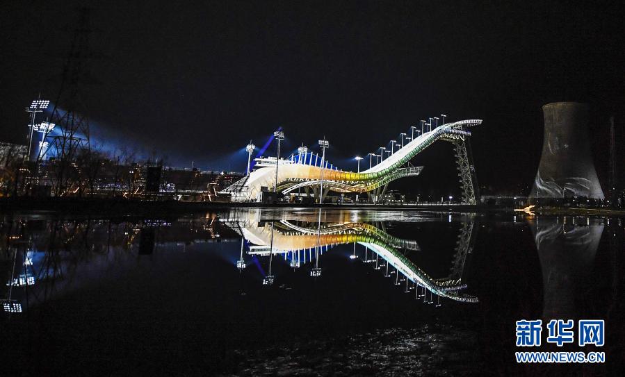 這是2019年12月14日拍攝的北京首鋼滑雪大跳臺(tái)夜景。新華社記者 夏一方 攝