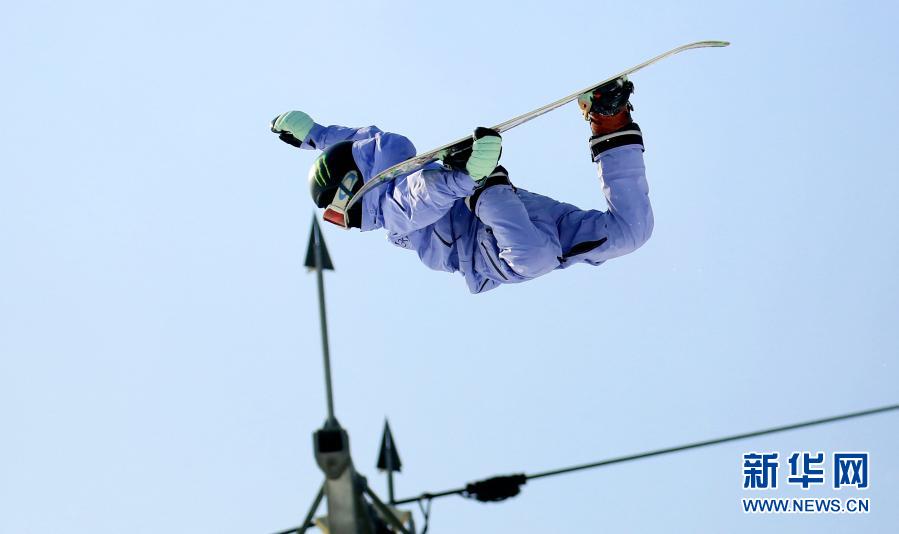 這是2020年12月10日,蘇翊鳴在吉林長(zhǎng)白山萬(wàn)達(dá)泰格嶺地形公園進(jìn)行單板滑雪大跳臺(tái)項(xiàng)目訓(xùn)練。新華社發(fā)(施維 攝)