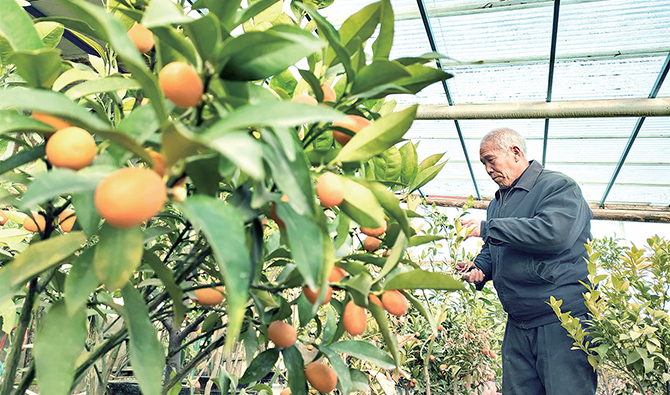 日前,在思禮鎮(zhèn)北姚村,農(nóng)民在修剪羊奶桔盆栽。