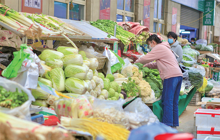 2月8日,市民正在菜市場購買蔬菜。